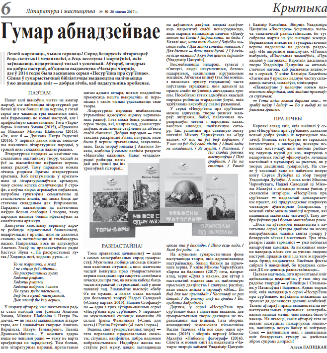 Гумар абнадзейвае Posted on 24.08.201722.08.2017 by Bazhena Share the post "Гумар абнадзейвае" FacebookVKontakte “ЛіМ” №30-2017 Share the post "Гумар абнадзейвае" FacebookVKontakte