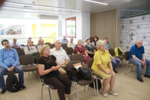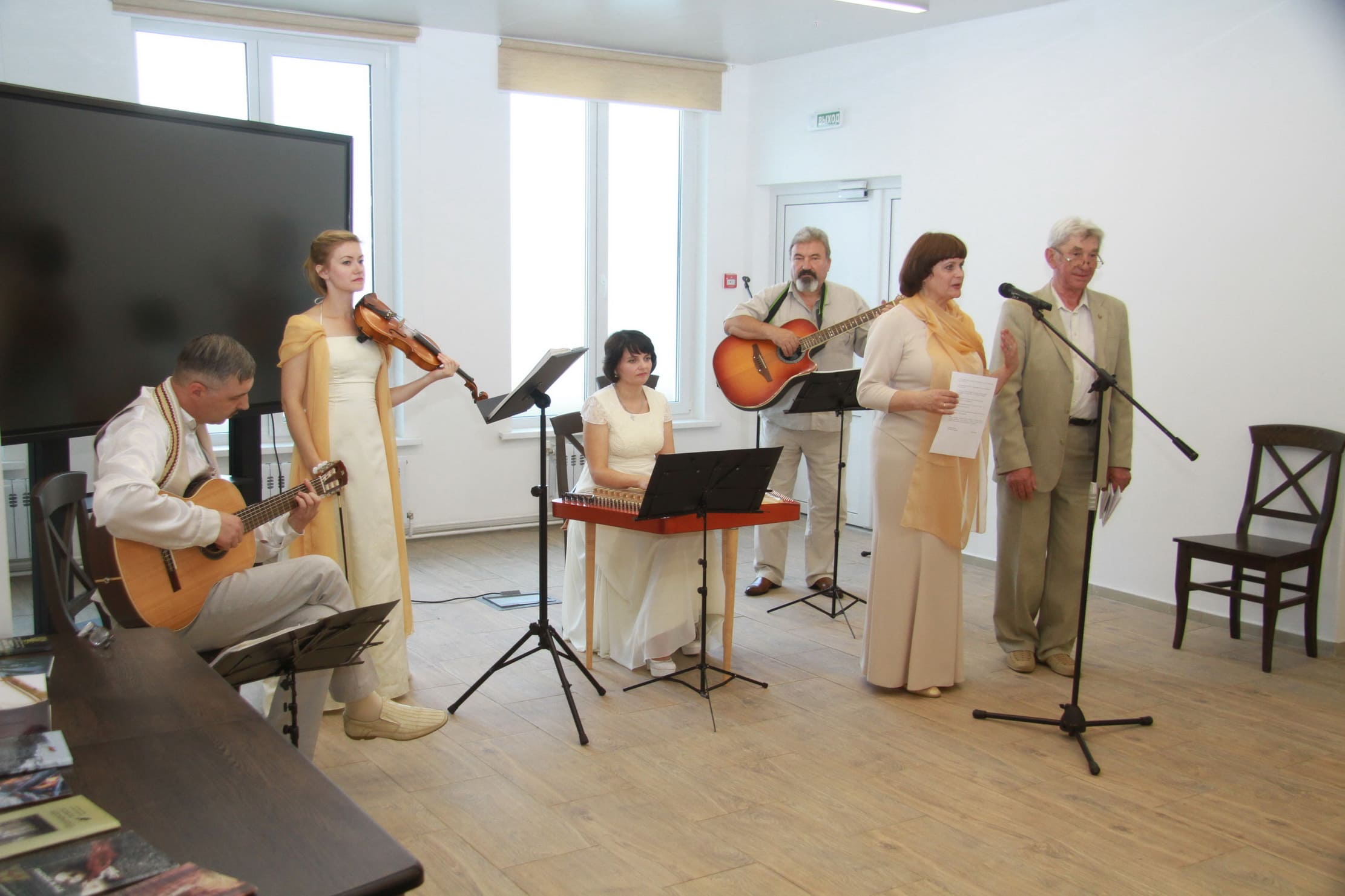 Пасля гэтага слова ўзяла вядучая музычна-паэтычнай імпрэзы, кіраўнік Народнага калектыва аўтарскай песні “Элегія” Цэнтра эстэтычнага выхавання ДУК “Цэнтралізаваная клубная сістэма Вілейскага раёна” Таццяне Захарыч. Удзельнікі гэтага вядомага музычна-песеннага калектыву прыехалі ў сталіцу, каб падтрымаць свайго таленавітага земляка.