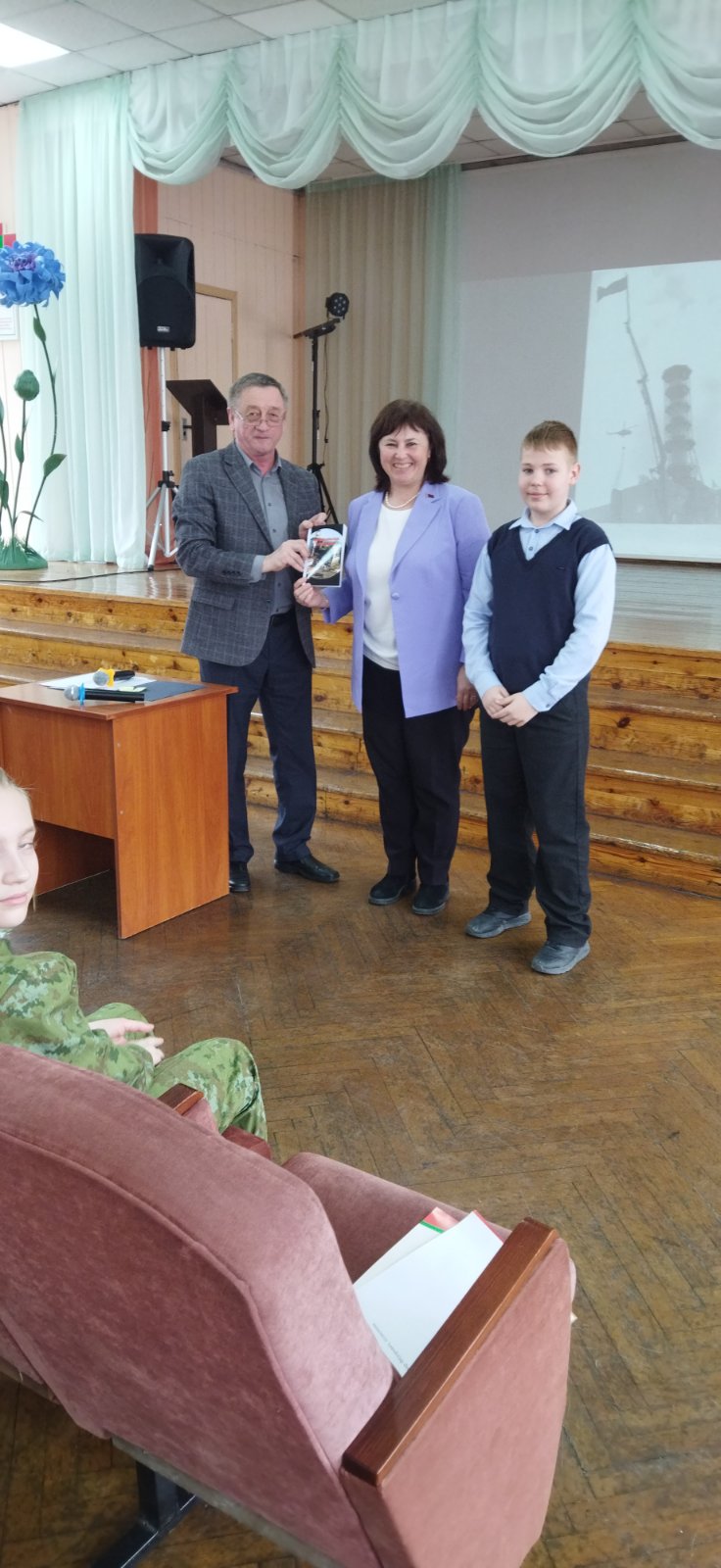 Напрыканцы сустрэчы пісьменнік падарыў бібліятэцы гімназіі калектыўны зборнік “Чарнобыльскія саракавіны”.
